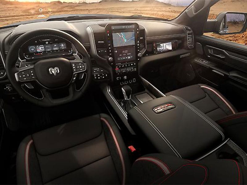Ram has done a great job turning the 1500 into a very modern place to spend time. The brand highlights over 50 inches of combined available digital display area and class-exclusive available dual wireless charging pads, which gives the truck clear wow factor.